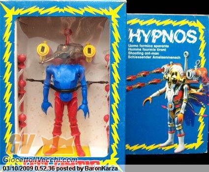 i personaggi sono tutti in plastica , tranne 2 (hypnos e Sloggy) che hanno anche piccole parti in metallo. questi ultimi, in particolare sloggy, sono i piu` rari e costosi. sloggy e` stato venduto mint a 250 euro.