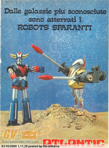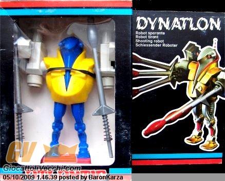 dynatlon veniva venduto anche in una confezione speciale "robot sparante" che a differenza della versione sparante con vetrinetta aveva una coppia di missiloni in piu`.