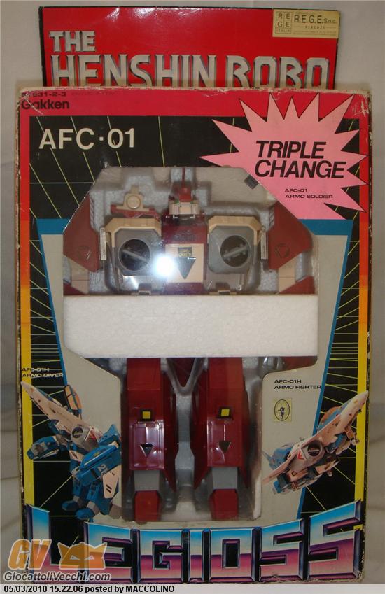 La creazione di questi giocattoli è un pò turbolenta: la Gakken detentrice dei diritti inizia la produzione in Giappone sicura che sulla scia di "Macross" la linea avr? successo. l`anime però non decolla e la serie viene chiusa dopo solo 25 episodi. Il tutto viene quindi trasferito a Singapore dove vedranno la luce giocattoli mai distribuiti "made in Japan" tra cui 2 Legioss 1/55 Pla. (rosso e verde), 2 Legioss 1/55 Die Cast (rosso e verde), 2 Legioss 1/72 (rosso e verde), le tre 1/20 Armour Cycle e l`introvabile 1/72 AB-01 Tread Armo-Bomber distribuito da Lansay. I soggetti comunque prodotti in Giappone verranno replicati in versione per l`esportazione dando origne ad una linea "The Henshin Robo" e una linea "Robotech" distribuita dalla Excite e dalla Matchbox. I pezzi di difficile reperibilit? rimangno i "Made in Japan" del Legioss 1/72 (visto una sola volta in asta da almeno 5 anni) e del Legioss 1/55 Pla. Anche i Legioss 1/55 Die Cast Made in Singapore sono oramai divenuti molto difficili da trovare. l`Armo Bomber della Lansay rimane capitolo a parte.