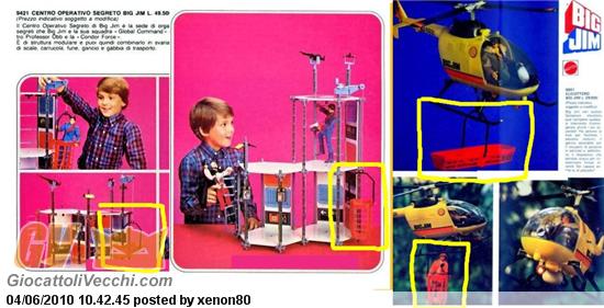 Bisogna tenere sempre conto che molto materiale di BJ era utilizzato con colorazioni differenti per Barbie. La corvette, la casa, il camper, la valigetta e molti accessori sono i medesimi. Addirittura sempre in BJ se non ricordo male alcuni pezzi venivano riciclati con usi differenti, la barella dell`elicottero giallo diventava l`ascensore nella base global command ad esempio.