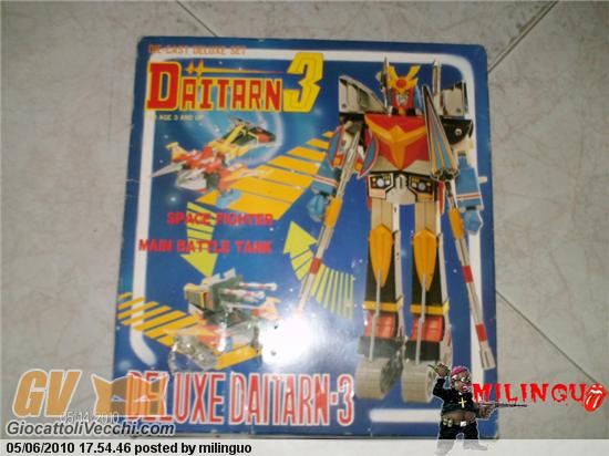 ciao ragazzi chiedo cortesemente la valutazione di questo daitarn che presi qua` su GV scatola non perfetta ma dignitosa, cromature del robot ottime completo al 100% ricordo che nell`inserzione c`era scritto, quando lo acquistai, che il venitore non era sicuro se le istruz erano o meno repro, quindi non lo so neanch` io.