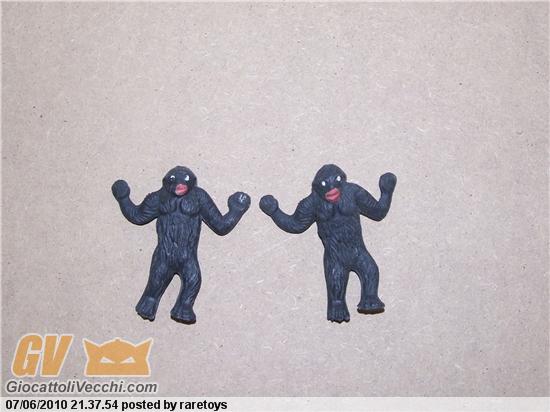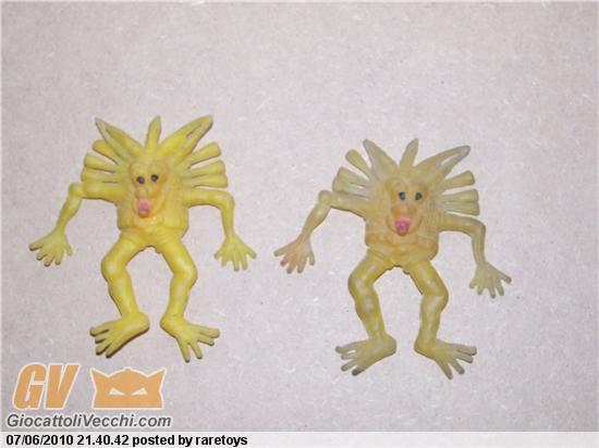 Io avevo il mostro giallo della seconda foto, e lo scheletro. Forse qualche insetto ma non ricordo bene... roba da macchinette, se ben ricordo.