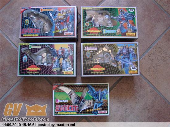 Sai cosa ho fatto (coincidenza!) dalle ferie? ho rispolverato subito lo scaffale dei dino (unico dove ho i "reperti" boxati)... ed ho fatto una foto ai 5 nostri beniamini (di cui uno swoop dia loose... sto pianificando una reprobox customizzata gig). Penso che le auto trasformabili (1 veicolo = 1 robot) siano state una grande invenzione per il mondo del giocattolo (le prime che mi vengono in mente sono le cosmocountach, cosmoporsche... serie microman 76-77), ma anni dopo con il duplice gioco robot/dinosauro...