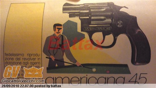 E` paradossale comunque...ai tempi era normale che un bambino di 5 anni andasse in giro con una pistola in metallo che riproduceva molto bene le armi originali, con cartuccie esplodenti a salve! (che mi ricordo facevano un bel botto! ...grande pericolo per i timpani ). Ottima idea Natalizia pure, come si vede dalle pubblicità delle foto qui sopra! ^_^ Ed era anche assolutamente Ok che un bambino guardasse film western in prima serata, dove gli indiani venivano massacrati dai Cow Boys! Mazinga invece tolto dai programmi siccome "diseducativo e violento"...davvero strani tempi...