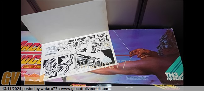 Recentemente ho fatto un ritrovamento inusuale. Sto indagando sull`autore e tutte le sfumature del caso, perché la cosa mi interessa da vicino. Ma per il momento posso dire che é un lavoro commissionato da Edison Giocattoli a l`agenzia Phasar di Firenze, che a sua volta si era affidata a un suo collaboratore. Trattasi di uno storyboard della genesi dell`arco di fuoco. Con tanto di scritte applicate successivamente sul disegno inchiostrato a china. Che io sappia mai andato in stampa, ma l`intera frase é stata ampliata e aggiunta nel retro della confezione dell`arco di fuoco. Posso agggiungere che fu usato anche come base per uno spot pubblicitario che fu andato perso insieme ad altri filmati (infatti attualmente in rete é visibile solamente uno sui playset delle Tb3 Project). W.