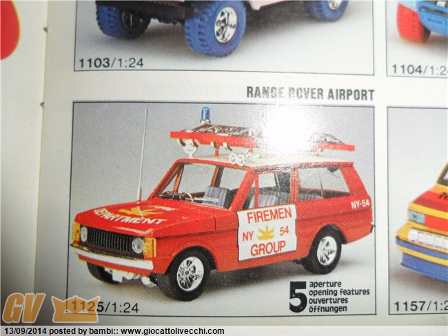 e infine, ma qua potrei essere smentito, nei cataloghi anni 80 ecco come compariva la range rover airport scala 1/24 e invece come è stata prodotta