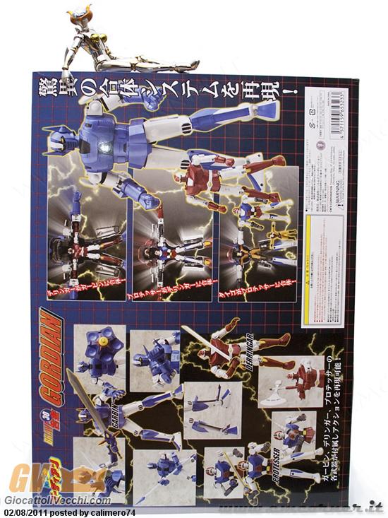 produttore: CM`s produzione: 02 Ottobre 2010 materiale: Metallo presso fuso, ABS/ATBC, PVC/PC accessori: 2 set di mani per robot, 3 armi robot Protesser, 2 armi Dellinger, 6 armi Garbin/Gordian, 2 miniature del pilota, miniatura patera clint, miniatura Saori (primo pilota del Gordian), tappi copri vite. altezza: 29 cm peso: manuale: Foglio singolo doppio A3 cartaceo, a colori, lingua giapponese, molto dettagliato acquisto: ZonaHobby prezzo all’origine: 24, 780 Yen