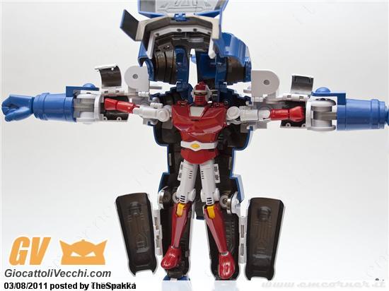 Avrei preferito armi realizzate in maniera un po’ più sobria ed un Dellinger fatto con più rispetto, ma tutto non si può avere ed anche l’aspetto maggiormente criticato, ovvero la dimensione dei robot secondari, a mio parere non ha ragion d’essere. E’ vero il vintage ha un Dellinger ed un Protesser più grandi, ma non rispetta l’incastro fra i tre e non è posabile né proporzionato quanto questo.