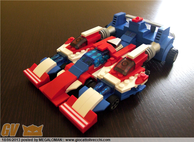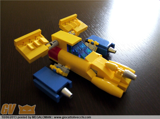 Ottima soluzione per far rientrare le ruote delle due laterali, così giran tranqullamente all`interno e molto più proporzionata la up machine:guardando il cartone, ho visto che i minireattori frontali terminano a punta, così li modificai nella mia.Inserendo un chiodino technic ci agganci i coni facilmente io li avevo messi grigi ma forse eran rossi in tv!Potremmo coinvolger Zetto a far un Gattiger a grandezza omini classici, con ognuno che ne fa un componente!mi prenoto per la left machine, la mia preferita
