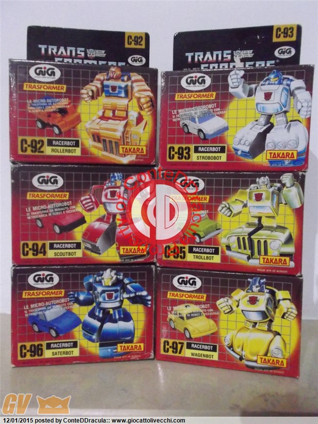 Grazie anche a Dudar, Nnvalido, Scorponok e tutti quelli che mi hanno aiutato a raggiungere un altro piccolo traguardo collezionistico. Per queste qui ho preso ispirazione dall`amico Artemisentreri0. Non sono in condizioni egregie tutte, ma le ho iniziate, quando... settembre 2014? Finite praticamente in 3 mesi, sono stato abbastanza veloce quasi quanto queste micro macchinine transformers g1 a retrocarica :s28