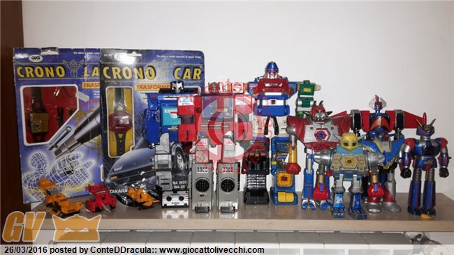 - PRE TF: Crono Laser e Crono Car che mi hanno consentito di completare i modelli della linea Crono gig MI(S)B/MO(S)C o come cavolo le vogliamo etichettare... le 3 trasformer destroy car gig prese tipo cotto&mangiato (la linea che ho completato nel piu`breve tempo possibile da quando colleziono, e non perche`siano comuni...)... la radio della Commando Toys che sarebbe stata poi integrata -ripresa nei colori- nei TF ufficialmente in sud America... e pre-blaster, che senza se no come faresti... Un ringraziamento particolare ad Hodettogatto.