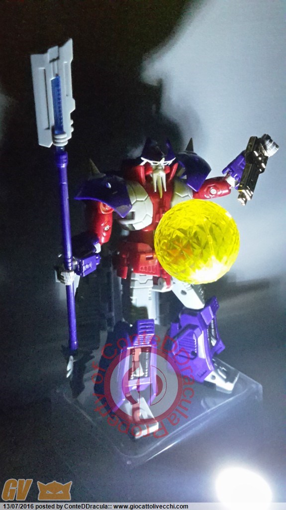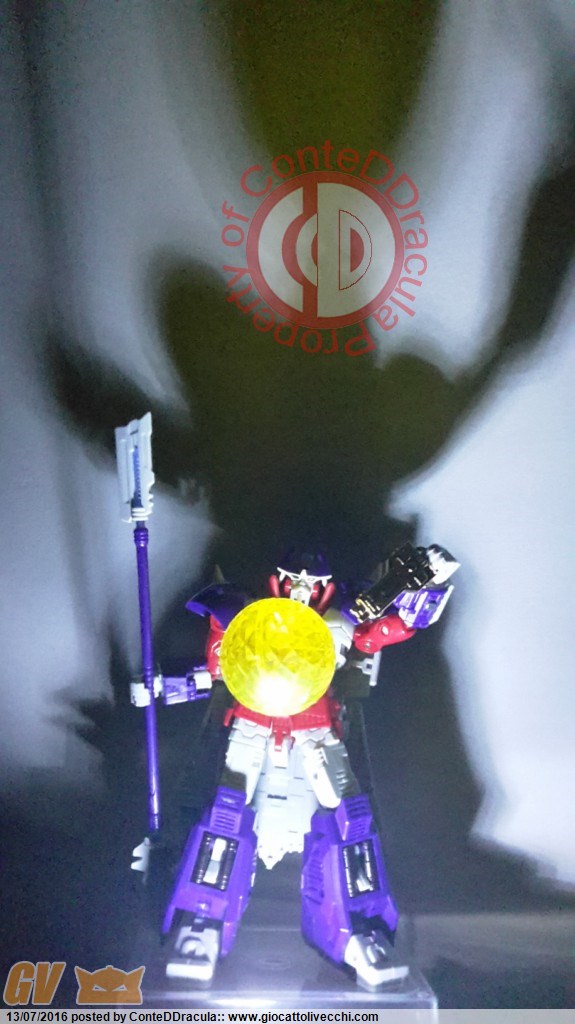 Alpha trion non si e`mai visto trasformato nei cartoni: si e`solo supposto come potesse essere una sorta di -semplice- astronave. Ebbene questa versione, dagli stessi produttori della Arcee delicate warrior citati in apertura, gode di una trasformazione bella ed al contempo efficace! La chiave e la sfera sono invece un prodotto ufficiale, dunque originale, per la linea MasterPiece... che ho voluto abbinare... e ci ho visto giusto! Guardate come fluttua dinanzi al vegliardo!