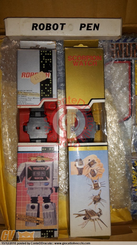 e siamo tornati a parlare di "tarocchi" ti pareva vi lascio con delle foto che possono essere assimilate ai "trasformer" mostrati... una bellissima focus robot oversized (importatore italiano) che vorrebbe essere la vera "reflector".. la famiglia dei metallosissimi dinopet (che manca anch`essa dello swoop! cavolo, ma fabbricarlo no, eh!?) sulla quale vigila un plasticosissimo grimlock guardlanship dagli sgargianti colori (importatore italiano)... altri cuccioli di dinosauro (wst clonati in scala) di fattura recente... degli orologini serie crono tarocchi vintage cui sono affezionato perche`sono gli stessi che mio padre regalava o vendeva nei primi anni 80 ...un jumpstarter tarocco poi fa capolino tra le RADIO robot (che all`epoca cercavano di spodestare quella originale), di cui una, dalle fattezze di megatron e prodotta da Commando Toys nel 1987, e`entrata ufficialmente nei transfomers in vendita in sudamerica grazie alla licenza hasbro...