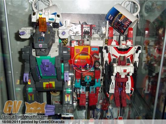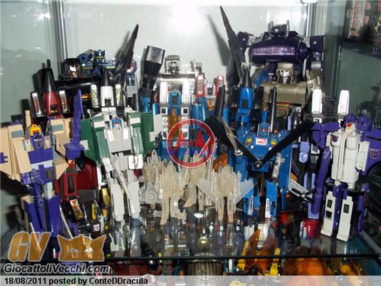 @helligen: Tutti? magari. Mi sono fermato a quelli che mi ricordavo, qualche variante, e qualche robot di serie mai arrivate da noi (tipo famiglia allargata). Ci vorrebbero penso almeno 15 vite per raccogliere una buonissima parte di tutti i transformers usciti tra originali, varianti, precedenti al cartone... (senza considerare le serie "nuove" dalla generazione 1 in poi e che non considero). Comunque data la tua eta`, l`ingresso e`gratuito e meno male che ti sei inserito a giro appena iniziato. Sto scherzando eh! Anzi grazie :19: