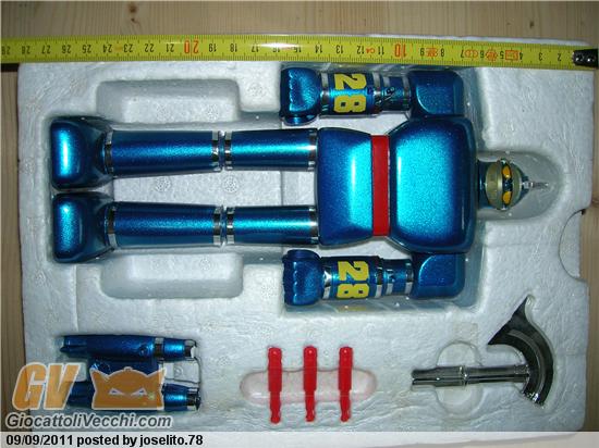 Ciao a tutti, sapete gentilmente indicarmi la casa costruttrice e la valutazione di questo modello di Supre Robot 28? Il robot è di dimensioni considerevoli circa 25cm. il busto è in lega metallica mentre braccia e gambe sono in plastica, non ha impressi marchi di fabbrica in nessuna delle sue parti. E` in ottime condizioni, praticamente nuovo, manca soltanto la confezione esterna. Grazie anticipatamente.