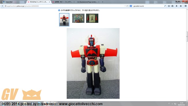 Asta del 3 Settembre 2014 Sito: Yahoo Japan Link asta: http://page4.auctions.yahoo.co.jp/jp/auction/d156183452 Toy: Popy - Danguard Jumbo Machinder
