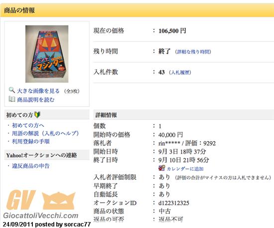 Asata del 10 Settembre 2011 Sito: Yahoo Japan Toy: Getter Poseidon In Box Prezzo: 106500 yen = Euro 1030, 00