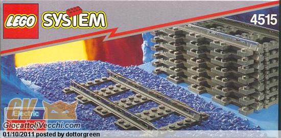 prima di tutto grazie per le spiegazioni, allora semplificando io ho una collezione di lego vecchi anni 80.. tra questi ho per esempio un treno passeggeri giallo e blu con la locomotiva nera con la ciminiera... non conosco il codice e non posso cercarlo perche` i set sono tutti imbustati e in non qui a casa mia. poi ho comprato a mio figlio (voglio che abbia una collezione sua) il treno ora in commercio Lego City 7938 Treno Passeggeri. il mio treno non aveva motore si doveva portare a mano sui binari grigi uno liscio e uno leggermente zigrinato.