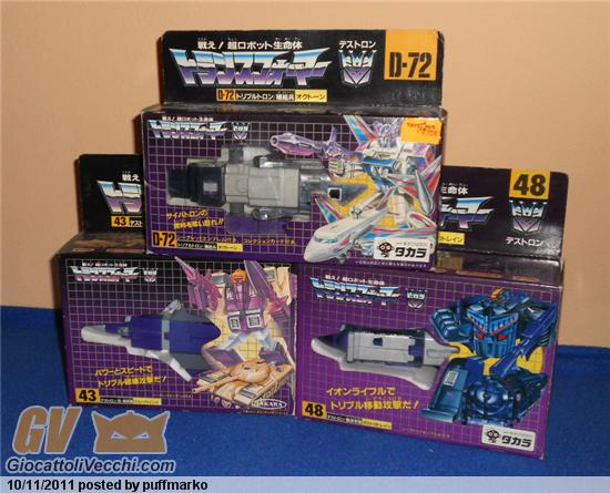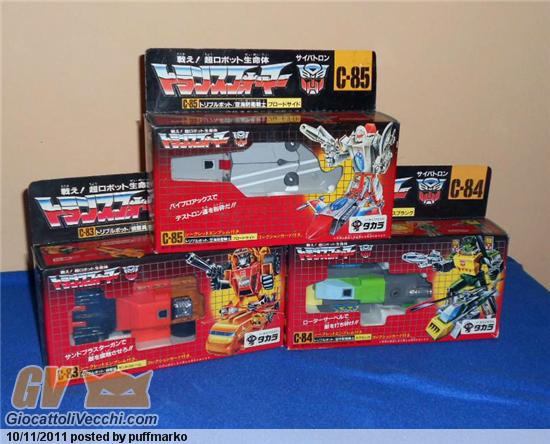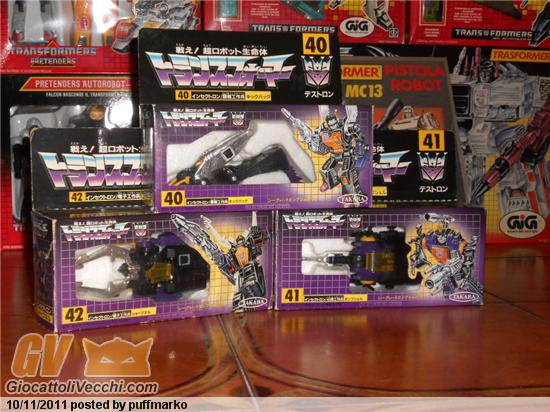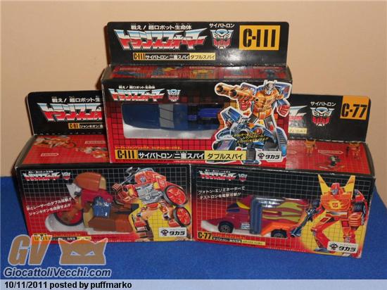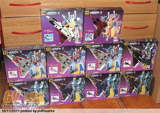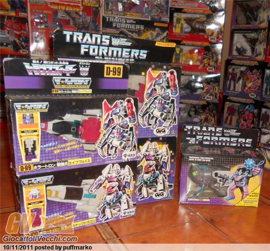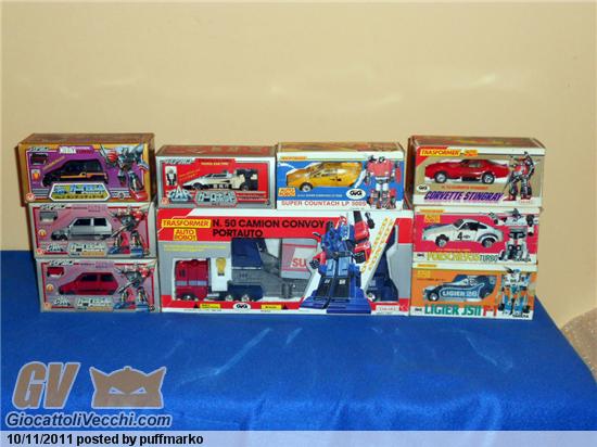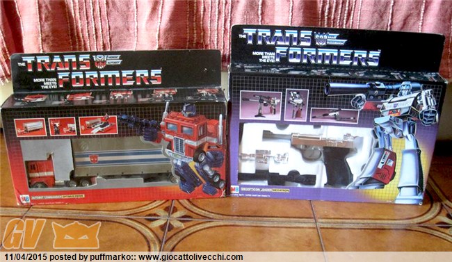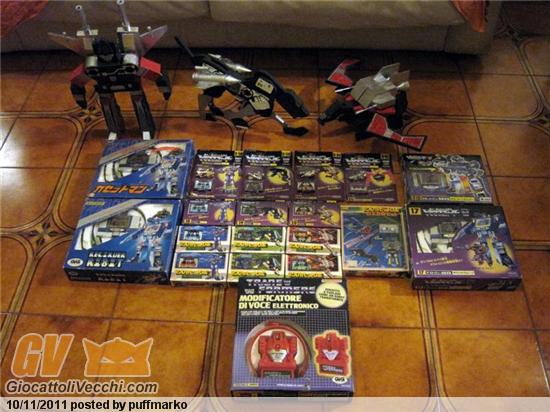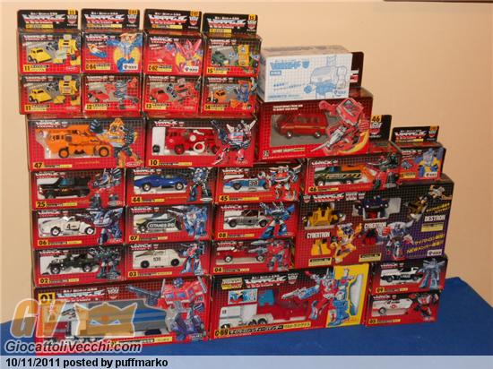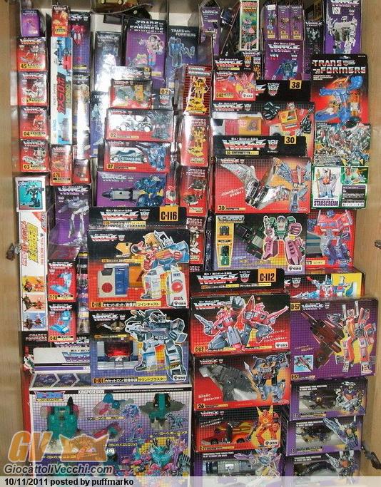 COME COLLEZIONO Non avendo purtroppo una condizione economica stabile ho deciso negli anni di non collezionare altre serie che ho adorato, prime tra tutte i Masters of the universe, i Cosmo Crass e i MASK. Prediligo collezionare giocattoli ancora imballati nelle loro confezioni ma la mancanza di spazio nel mio appartamento mal si concilia con le mie preferenze collezionistiche; conservo i miei pezzi in una vetrina e in un paio di armadi, sognando un giorno di poterli esporre tutti in una sorta di gigantesca bacheca. Spiegare la mia collezione non è semplice: il "main core" è composto dalla G1 giapponese (1985-1987), una scelta di edizione dettata dal mio gusto di adulto; in questo ultimo periodo però, vinto da una forte nostalgia, ho scelto di affiancare a molti dei miei pezzi giapponesi la loro controparte in scatola italiana. Scelgo di acquistare i miei pezzi nelle migliori condizioni possibili, cercando con ostinazione l`upgrade definitivo per ognuno di essi.