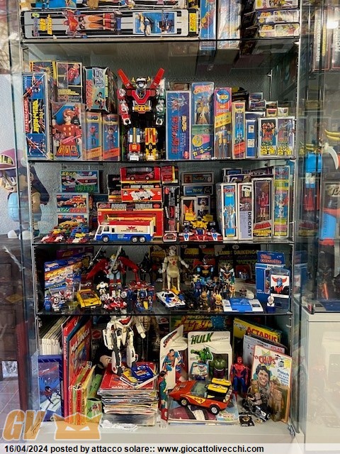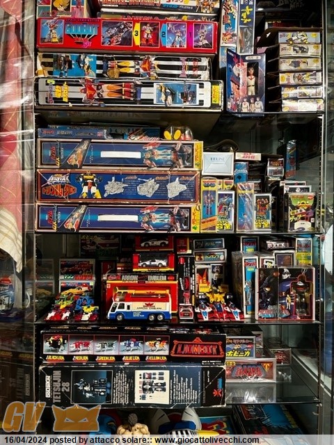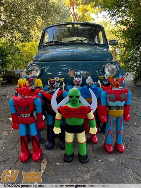 collezione incredibile? direi proprio di sì!!! invidia totale per il jumbo del Getta 1 e del Mazinga Z! e del jumbo del Tekkaman no? pezzi inavvicinabili. per non parlare dei tre Gakeen della Sanzen o del Mekander dx della Bullmark! un pezzo che ti invidio in maniera mostruosamente mostruosa!! il tabletop di Gundam qui sopra, altro pezzo che mi piacerebbe avere. ma direi che tutti i tuoi pezzi sono robot che vorrei avere! il jumbo del Jeeg, che spettacolo! veramente gigantesco. complimenti anche per il materiale cartaceo e l`esposizione molto da negozio vintage. la fiat 500 fantastica!!! complimenti per tutto