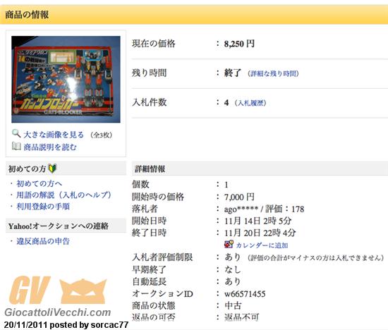 Asta del 20 Novembre 2011 Sito: Yahoo Japan Toy: Gats-Blocker In Box Prezzo: 8250 yen = Euro 79, 00