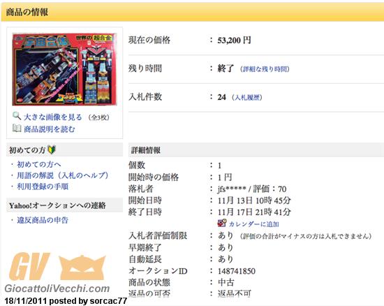 Asta del 16 Novembre 2011 Sito: Yahoo Japan Toy: Godsigma DX In Box Prezzo: 53200 yen = Euro 513, 00