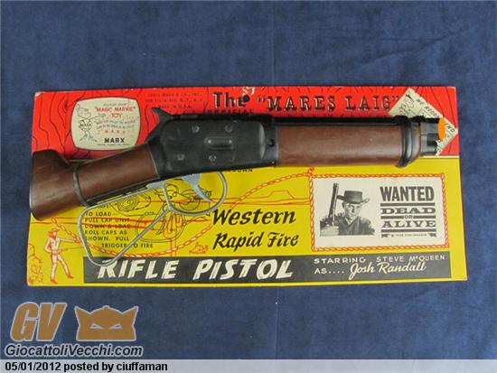 Ciao Fabio!! Ecco il mitico Winchester a canna mozza, portato in una fondina `swivel` da Steve Mc Queen in Wanted Dead or Alive..