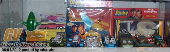 Contribuisco anch`io con qualcosa della mia collezione Da sinistra a destra in prima fila: Spectrum Pursuit Vehicle e Spectrum Patrol car (Captain Scarlet), Sam`s car (Joe 90), Eagle transporter e Eagle freighter (Spazio 1999), Buck Rogers Starfighter, Lunar Rowing vehicle (copia del veicolo NASA), Shado 2 mobile, Ed Straker`s car e UFO interceptor (UFO) In seconda fila: Thunderbird 2 e 4 in due colorazioni e Lady Penelope`s FAB 1 (Thunderbirds), Klingon Battle cruiser e USS Enterprise (star Trek)