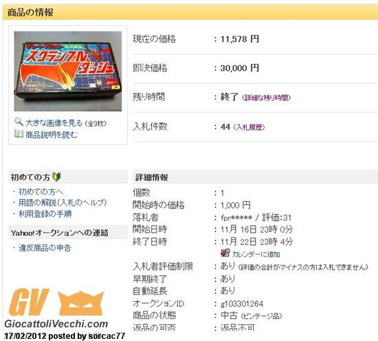 Asta del 22 Novembre 2011 Sito: Yahoo Japan Toy: Scramble-Dash MIB Prezzo: 11578 yen = Euro 111 circa