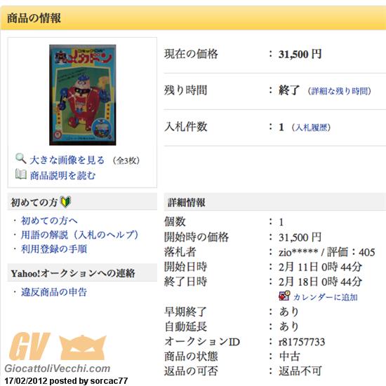 Asta del 17 Febbraio 2012 Sito: Yahoo Japan Link asta: http://page7.auctions.yahoo.co.jp/jp/auction/r81757733