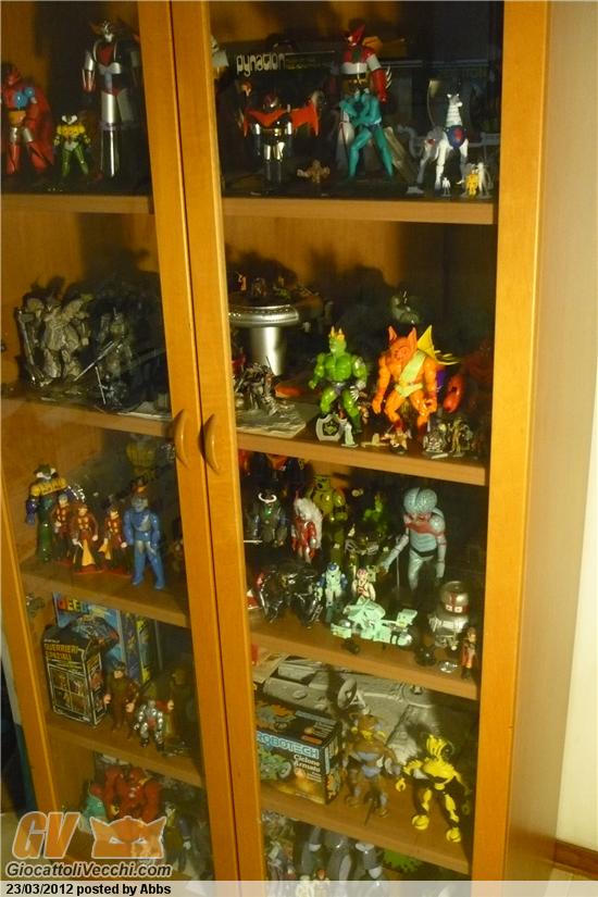 salve a tutti. mi chiamo Marco e sono nato nello stesso anno in cui è arrivato Goldrake in italia. ho iniziato a collezionare robot vecchi nei primi anni 90 quando molti avevano già iniziato la caccia nei negozi. il collezionismo di robot vecchi è durato per quegli anni, poi per motivi economici e perchè avevo finito i miei da scambiare, ho dovuto abbandonarlo, e per anni non ho più aggiunto nulla di nuovo. poi circa 4 anni fa, è riappaeso in una rete televisiva locale, il vecchio cartone dei Masters che mi ha aperto una finestra sul passato e riacceso la passione!! quando poi 2 anni dopo ho comprato il mio primo computer, sono impazzito alla gioia e mi sono rimesso a caccia. sempre per motivi economici, comunque, non posso più permettermi robot vecchi e mi sono concentrato più sui Masters e serie parallele che sono anche diventati la mia nuova passione. i Masters li prendo loose, ma con la prerogativa che siano tutti perfetti e senza neanche un graffio, sono un pò maniaco in questo. infatti per trovare quelli che mi piacevano loose ma tutti perfetti, ci ho messo circa 2 anni. purtroppo non ho molto di che spendere, infatti la mia passione è la scrittura, e qualche anno fa ho pubblicato il mio primo libro dal fantomatico titolo: " mentre stava incominciando a piovere ", ma per vivere, ovviamente, lavoro in altri ambiti, altrimenti mi sarei cibato solo di candele!!! aha aha! spero a fine anno di buttarne fuori il prossimo a cui sto lavorando da anni, ma non è facile conciliare il lavoro con la scrittura. quindi gli ultimi pezzi acquistati sono prevalentemente motu loose. per quanto riguarda l`esposizione, ho solo una vetrina, ed il resto lo tengo in 2 bauli, ed alcune cose a casa dei miei. in finale, per quanto mi riguarda, mi piace valorizzare ogni pezzo. allora questa è la mia collezione, c`è anche qualche robot, e buon divertimento.