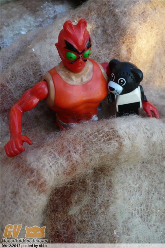 veilà!! grande Destron!!! grazie che sei passato e ti ringrazio sempre per i complimenti!! bella quella del regno dell`orrore!!!! belli i film della Hammer eh? grandi atmosfere e scenografie!! quelli si che erano film dell`orrore! da vedere quando fuori piove e i tuoni fanno tremare le finestre!! sono contentissimo che ti sia piaciuto Satyr! appartiene alla serie dei Galaxy Heroes, personaaggi ancora più economici dei Galaxy warriors e Fighters, infatti la maggior parte di loro sono orribili, ma come succedeva spesso per queste serie parallele, alcuni di loro sono veramnete originali e fatti molto bene: uno di questi è proprio Satyr. di questa serie, comunque, salvo lui e solo altri due personaggi. pensa che figura anche il personaggio di Huk ma fatto malissimo! comunque queste serie, come nel caso di Satyr, possono nascondere grandi personaggi e figure malefiche da affiancare ai motu per creare un`orda infernale da esporre nella propria vetrina. ricordo quando ero piccolo negli anni ottanta dove tutto girava attorno alla fantasia, dai film, ai cartoni ecc. ed io mi trovavo a giocare con gli amici ai Masters sfoggiando questi personaggi bootleg cattivissimi ed ultra fantasy. mi sembrava di utilizzare i personaggi che vedevo nei film fantasy! poi ovviamente li ho distrutti tutti in mille avventure, ed ora da adulto collezionandoli posso tornare col pensiero a quegli anni tanto spensierati ed emozionarmi come allora. Skulk e Trancula sono sicuramente i migliori personaggi dei Sectaurs insieme a Spidrax e Spiderfly, e fantastica l`idea della serie di utilizzare i ragnoni come marionette! ti ringrazio sempre di tutti i complimenti e per le belle chiaccherate. quando riesco fotografo anche gli altri bootleg della mia collezione. ne ho ancora vari ma sono chiusi in armadi ecc per difenderli dalla polvere. ne ho alcuni di davvero gustosi che possono riservare delle belle sorprese. grazie mille ancora brother!!! !!!!