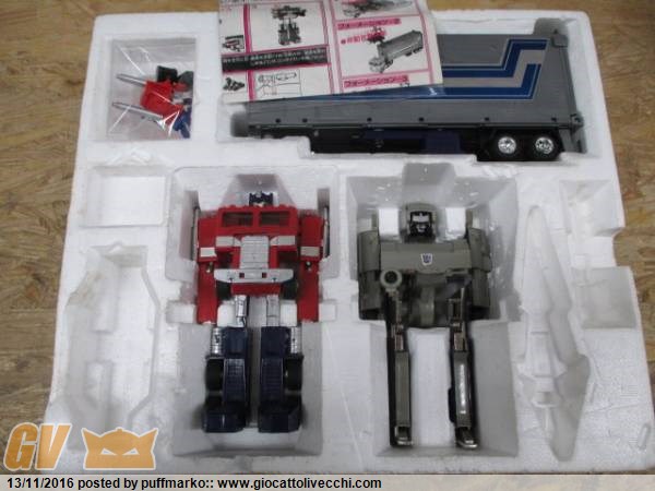 Il set era largamente incompleto, mancano i paperworks (istruzioni, catalogo e garanzia) pugni bloated, canna del gas, tubo della benzina, arma tipici del Convoy pre rub, i missili azzurro chiaro di megatro; i due leader appaiono giocati. Non è chiaro se la scatola sia integra o presenti delle parti ritagliate sul retro. Il polistirolo è bellissimo, in condizioni eccellenti. Il prezzo è più o meno la metà di quanto ha fatto l`ultimo VSX ufficialmente venduto su piattaforme online. L`ultimo venduto privatamente, mint che più non si poteva, ha fatto quasi quattro volte tanto.
