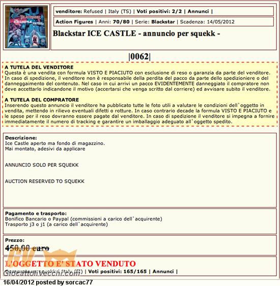 Inserzione con scadenza 14 Maggio 2012 Sito: Giocattoli Vecchi Link Asta Toy: Galoob Blackstar The Ice Castle NMIB [Box Scolorito] Prezzo: Euro 450, 00