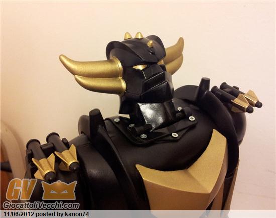 mmm l`idea di mescolare argento e oro non combacia con la mia idea di versione dark/oro o versione dark/argento. Questa e` la versione very dark come e` giusto che sia anche nei chogokin dove il robot e` interamente nero tranne qualche dettaglio. La gold version non deve avere l`argento come viceversa la silver non avra` l`oro. Chiaramente la normal color potra` avere tutti i colori originali ma in questa esatta versione ho volutamente cercato l`oscurita` e la cattiveria eheheh. Con l`argento sarebbe anch`esso bello ma meno cattivo :-) Quando lo vedi dal vivo fa quasi paura credimi. Poi se gli faccio gli occhi fosforescenti di notte è meglio che lo chiudo nell`armadio perche` altrimenti me la faccio sotto ahahahahaha