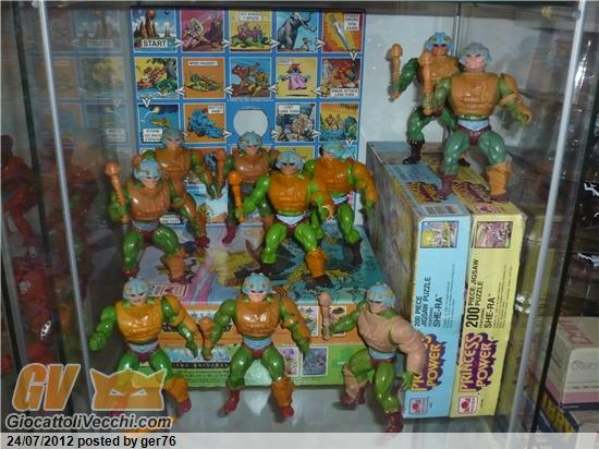 ciao ger!!! ! non vedevo l`ora di vedere la tua collezione!!! !!! !!! !!! ! stupenda!!! !!! quel Mer Man Estrela brasiliano è da panico!!!! fantastico con quell`armatura arancione, sembra fatta di corallo!!! capolavoro! anche l`Oceanor-Mer Man francese da vedere in gruppo si differenzia molto!! bellissimo!! ho visto anche tanti top toys molto originali e tanto difficili da reperire! poi, quel Man At Arms con l`armatura chiarissima è fantastico!!!! è quello spagnolo vero? una bomba!!! bella anche la scelta espositiva! ora me li guardo e studio con calma! non vedo l`ora di vedere i prossimi!!! sul fatto che ci si rilassa posizionandoli in vetrina, sono d`accordissimo!!! anche io mi rilasso sempre un casino quando li riposiziono, li studio o li cambio di posizione. troppo divertente!! aspetto poi con furore le tue spiegazioni per variante che molti mi piacerebbe sapere a quale stato appartengono. complimentissimi per la collection!!! bellissima!!! !! ovvio il mio voto. a presto!