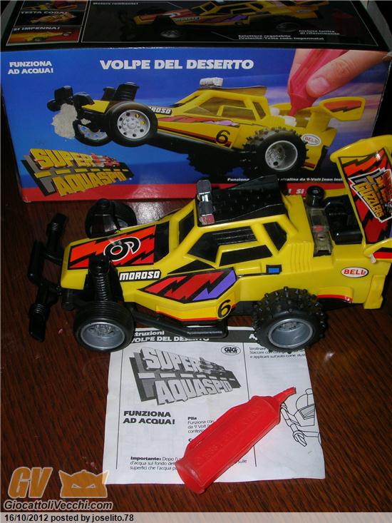 Ciao a tutti, sapreste darmi una valutazione circa questi due pezzi distrubuiti dalla GIG negli anni `80? Si tratta di uno dei mezzi della serie The Animal, funzionavano con 4 pile, il pezzo è giocato ma funziona perfettamente, uniche sgnalazioni lo specchietto retrovisore sx mancante e il vetrino sul cofano presenta una venatura. la scatola è un pò vissuta ma integra. L`altra è una macchinina che funziona con una pila da 4, 5 volt e per farla muovere occorre una piccola quantità d`acqua da insereire nel serbatoio. Come visibile dlle foto è in ottime condizioni completa di tanica per il rifornimento e istruzioni, anche la scatola e in buone condizioni. Grazie per il vostro parere.