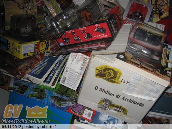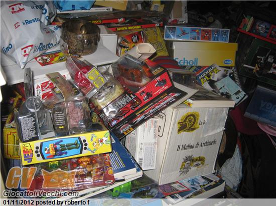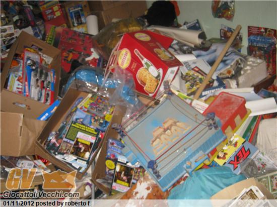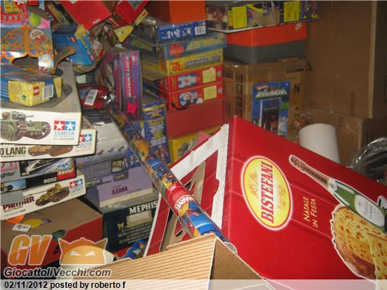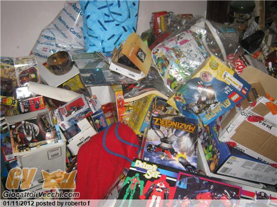 Ciao a tutti mi chiamo roberto e sono un prima di tutto molto contento di far parte di GV poi mi presento colleziono giocattoli praticamente da quando sono nato e fino al 20 maggio non mi sono mai accorto del CAOS che ho creato in casa in tutti questi anni;cioe aver riempito in volune 4 staze di 25 metri quadri finalmente mi e` stato concesso l`uso del bassocomodo in giardino cosi` ho iniziato ad insatolare e PARCHEGGIARE nelle stanze a piano terra le mie preziosita` oggi ho fatto un po` di foto per testimoniare la mia schizzofrenia e chiedo a voi mitici eroi di gv se sono normale visto che tutti quelli che mi conoscono mi definiscono PSICOPATICO chiedo anche un cosiglio per le teche da utilizzare perche` quelle che avevo sono esplose col terremoto erano in vetro trasparenti "ielle nera" i dvd si sono salvati ringraziandovi anticipatamente grazie di esistere non sono solo con questa STRTOSFERICA PASSIONE chiedo anche scusa se compaio e scompaio ma causa problemi di salute vado avantied indietro in ospadale solo quest`anno 4 operazioni di cisti pilonidale.