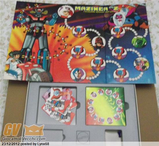 MAZINGA Z alla riscossa Giochi Mattel Scatola Buona con 2 lati un pò sbiaditi, Tabellone ottimo, 20 carte ottime, 2 scatole in cartone con numeri e personaggi buone e 3 segnalini.