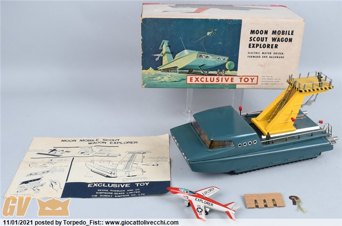 Per la mia MOON MOBILE SCOUT WAGON EXPLORER della Bandai Japan, dato che i pezzi originali sono abbastanza introvabili, pensavo di poterla ripristinare con delle repro di 2 soldatini piccoli in plastica, di 2 cingoli in gomma ed un aereo in latta simile a quello mostrato.