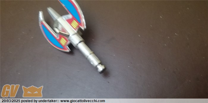 arma tridente senza difetti o rotture, adesivi perfetti, si attacca ala braccio del robot senza problemi, made in japan