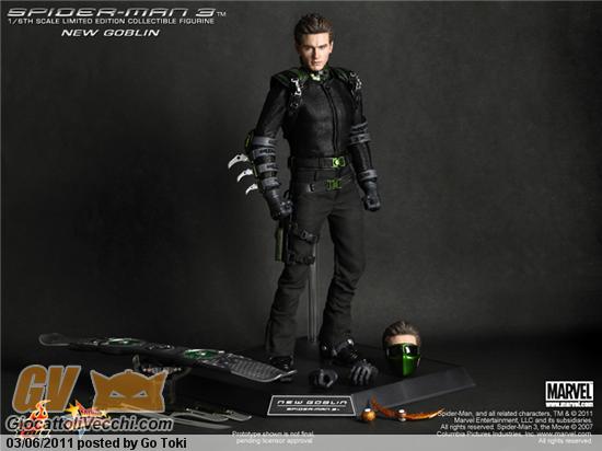 Hot Toys is proud to present the 1/6th scale New Goblin Limited Edition Collectible Figurine from the Spider-Man 3 movie. The movie-accurate New Goblin collectible is specially crafted based on the image of James Franco in the movie, highlighting the authentic head sculpt, highly detailed costume, weapons and accessories.