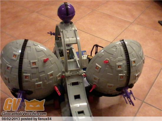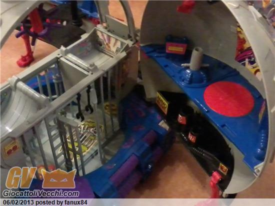 Eccovi accontentati : avevate ragione chiedo scusa non avevo pensato a pubblicare anche foto del retro; come vedete c`è tutto, sia le armi esterne che la pedana da dove può cadere l`occhio e l`accessorio viola per appendere le armi c`è : lo notate appoggiato sulla pedana blu accanto al cancello della prigione; per quanto riguarda la scatola provvedo a scattare una foto al più presto.