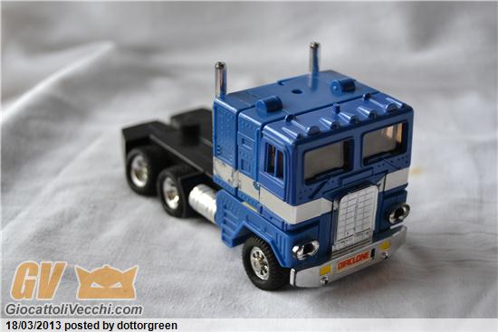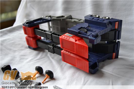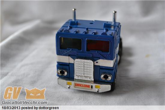 La bisarca è quella prima versione (plastica glitterata) in linea con la cibina blu e la testa con le corna a punta. Anche se le foto non sono perfette, si nota.
