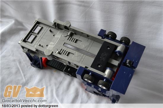 Eccomi . Praticamente il pezzo nero dove c`è il marchio dovrebbe essere formato da 2 elementi uniti , uno quello con le scritte , l`altro che va a coprire i tondini blu che tengono le ruote posteriori . Non è rotto , manca solo , forse si è svitato. Guarda on line se trovi un convoy rigirato così vedi esattamente il pezzo com`è!! Scusa se non ti posto io una foto ma ho tutti impacchettato!!