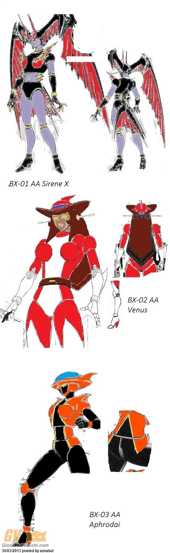 allora: la Bx-01 Siren X è archiviata da un mese e dopo il il ripensamento sulla getter q AA e la sua trasformazione nella misteriosa shin getter q, ho abbandonato l`idea della dianan AA (classic mazinger jumbo color ver) verso la nuova # # # # # # queen che utilizza il corpo 100% dianan ma con testa # # # # # # ver. spero che sua customosità accetti. l`idea mi è venuta vedendo il settei originale di gamia Q che non aveva la testa da donna, ma robotica...