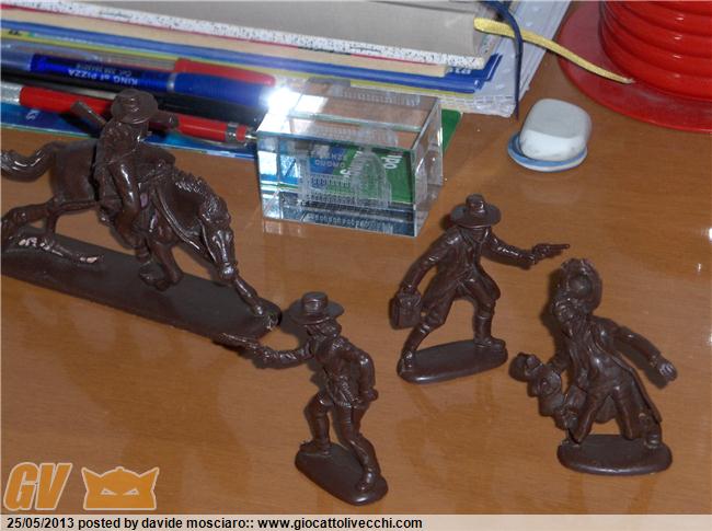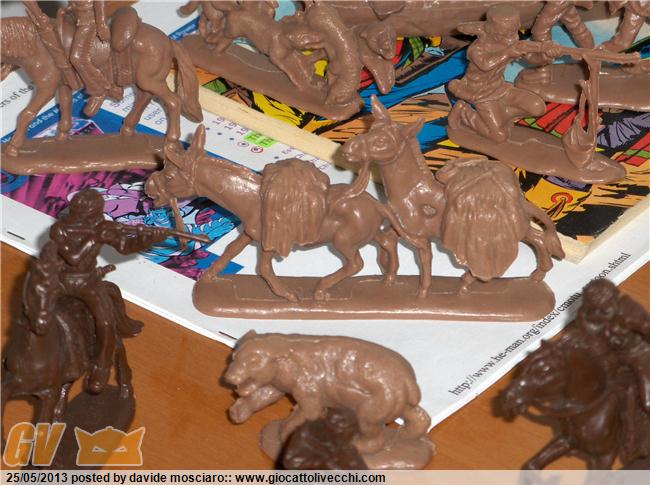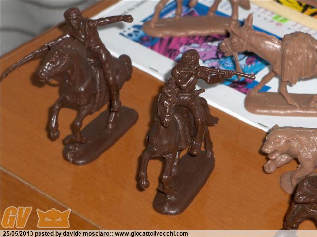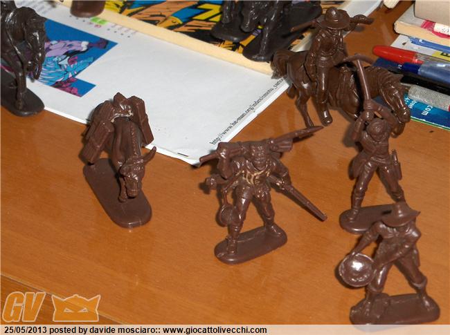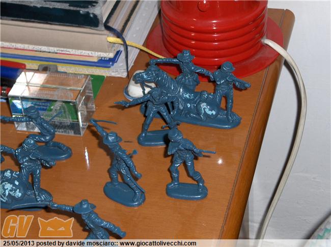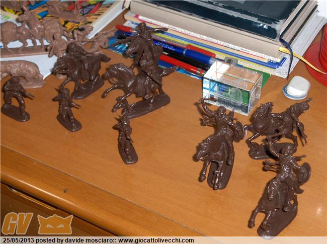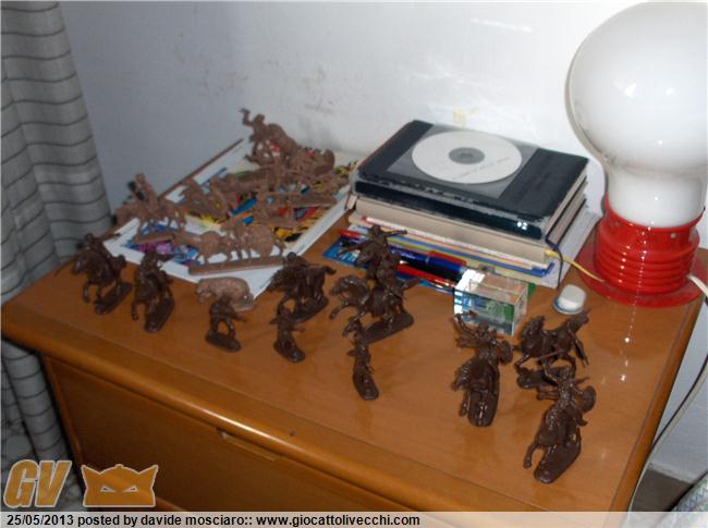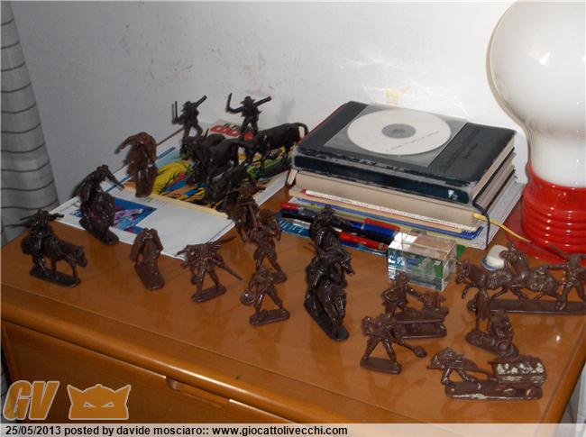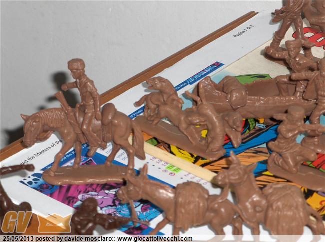 ecco la mia collezione di soldatini western atlantic scala 1/32 è composta da due packs del generale custer, due di geronimo apache, stampede, gold rush, davy crockett, bandits and sheriffs....
