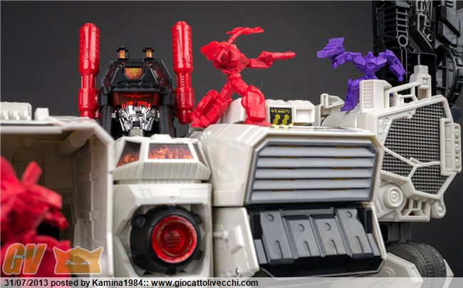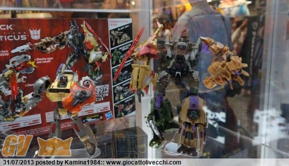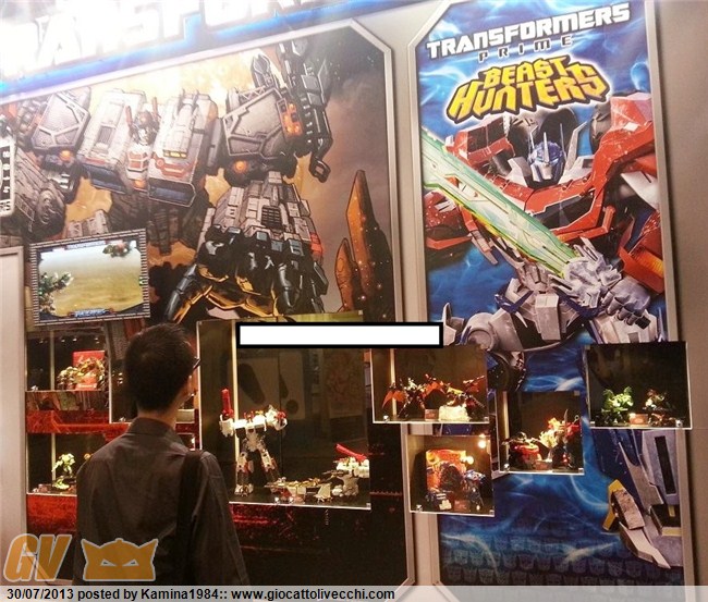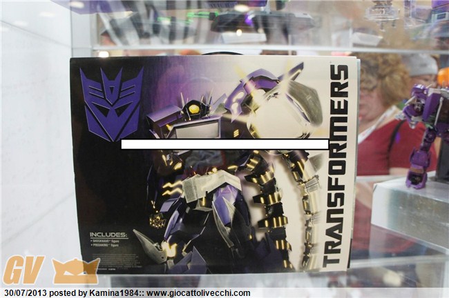 Allora parto dall`ultima convention, quella asiatica. Niente di particolare: i toys maggiormente apprezzati sono stati la versione esclusiva del Titan Class Metroplex (identica a quella dell`SDCC tranne che per le colorazioni delle figures, qui oro/argento, in quella americana rosse/viola), il Gift-Set Platinum di Grimlock & Bruticus FOC e l`altro limited, ShockWave`s Laboratory. Ma si trattava di oggetti già visti a San Diego la settimana prima. Poi vi era il Deformerd Optimus Prime (non trasformabile) della Kids Logic su approvazione della Hasbro (annunciato anche Megatron).