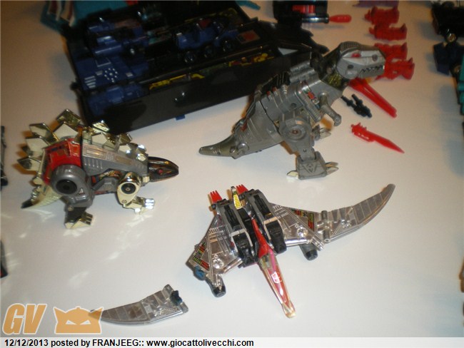 -stegosauro (snarl) completo di spada (rossa in basso a sx), fucile (quello nero subito alla sx dei pugni) e lanciamissili (quello alla dx della spada) credo un 25-30 euro