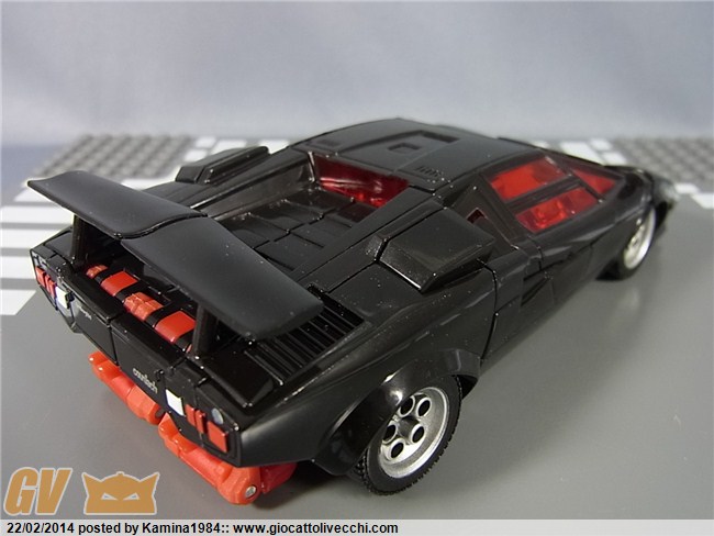 una countach tamarrosamente elaborata con due ventole/sfiati/nonsocomesichiamano cromate/i sopra il motore ed un alettone posteriore più largo (e cromato...) ed adesivi con donnine nude sul retro
